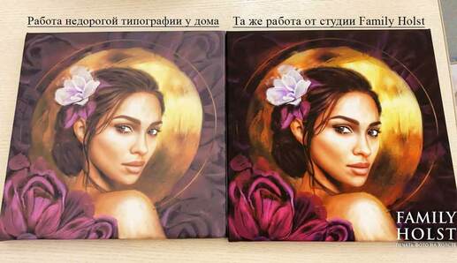 Фото от нашего клиента: слева картина, напечатанная в одной из типографий Санкт-Петербурга (результат клиента не устроил, поэтому он обратился к нам). Справа картина нашего производства.
